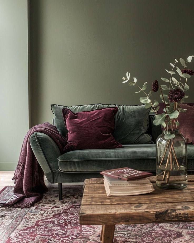 C’est une couleur qui se marie particulièrement bien avec des tons neutres comme le beige, le greige, le gris clair ou l’écru, mais aussi avec des matières naturelles (bois, lin, pierre) qui viennent adoucir son intensité. Pour un rendu équilibré le rouge pourpre s’accorde parfaitement avec le rose poudré et il est complémentaire avec des verts kakis.