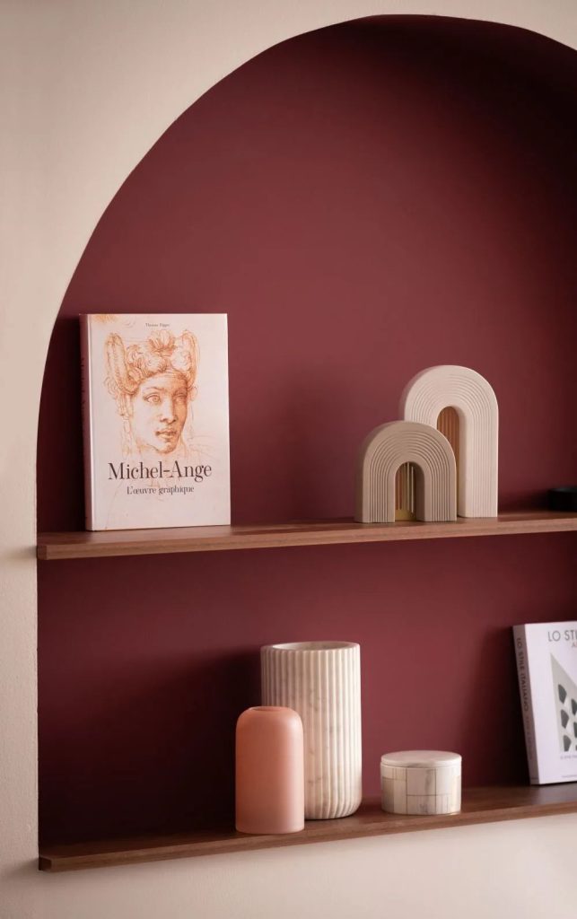 - Enfin, il faut garder en tête la lumière naturelle : dans une pièce sombre, le rouge pourpre peut paraître trop lourd s’il est utilisé en excès.